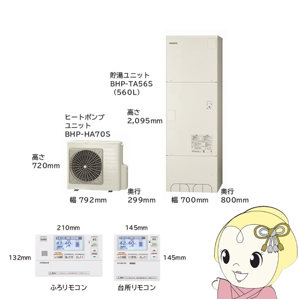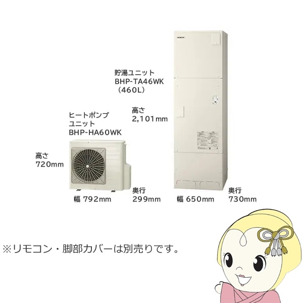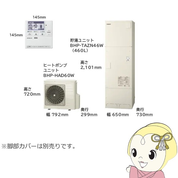 商品コード:BHP-F56SU-SET【法人限定・メーカー直送・車上渡し】エコキュート 給湯専用シリーズ 460L 4~6人用 日立 BHP-ZN46WU 給湯専用 脚部カバー別売【関東~四国は送料無料!(離島除く)】