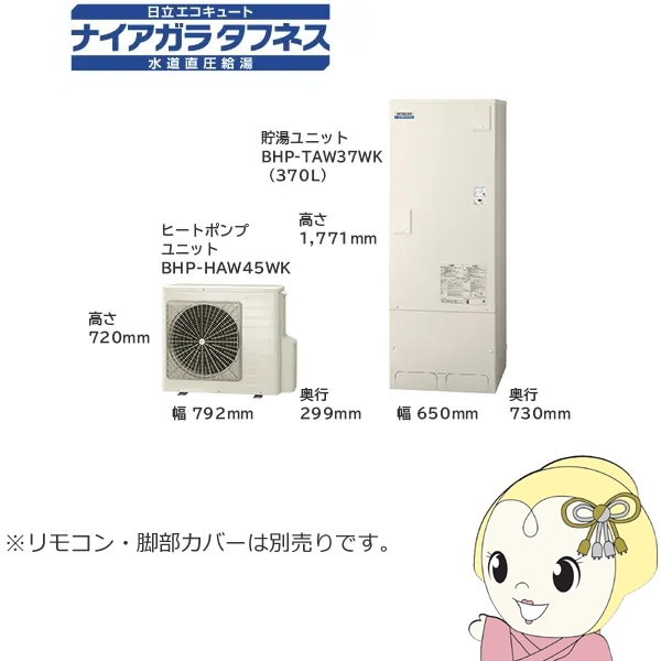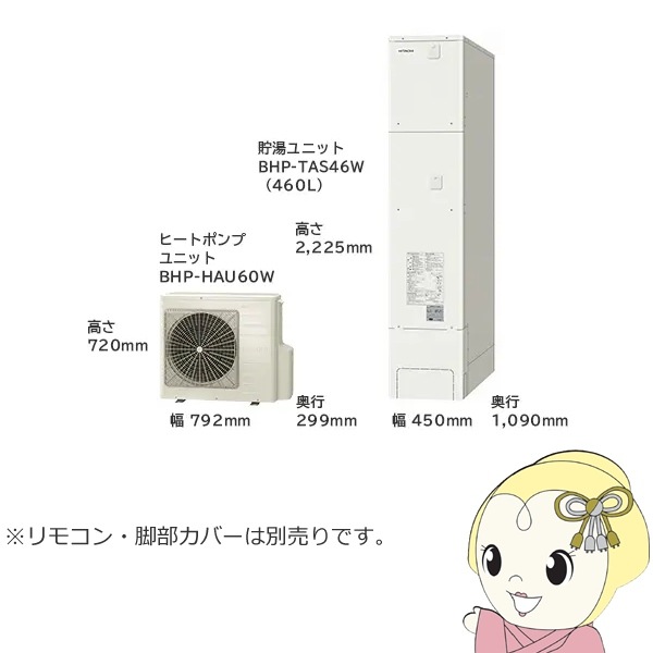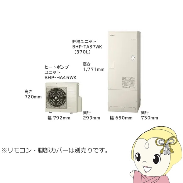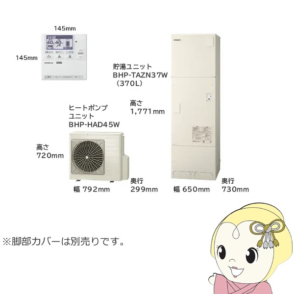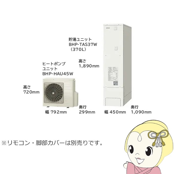 商品コード:BHP-ZN46WU【法人限定・メーカー直送・車上渡し】エコキュート 給湯専用シリーズ 370L 3~5人用 日立 BHP-ZN37WU 給湯専用 脚部カバー別売【関東~四国は送料無料!(離島除く)】