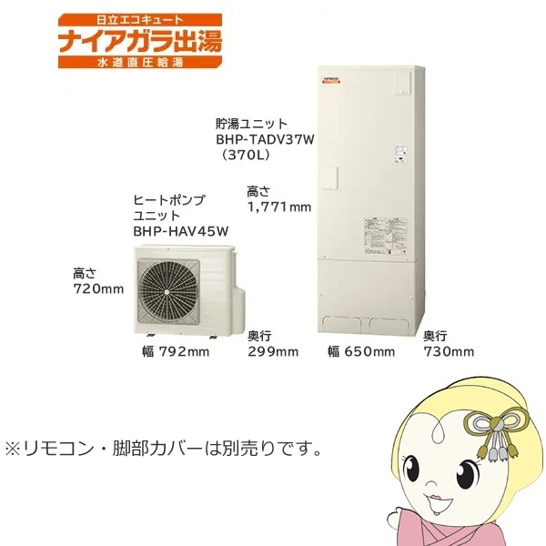 商品コード:BHP-FV46WD【法人限定・メーカー直送・車上渡し】エコキュート 370L 3~5人用 日立 BHP-FV37WD フルオート リモコン・脚部カバー別売【関東~四国は送料無料!(離島除く)】