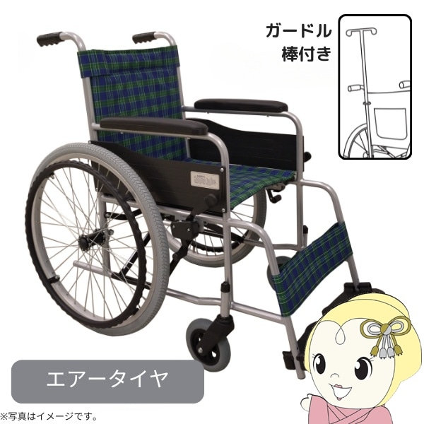 商品コード:NEF-M100R自走式標準形車いす 車椅子 スタンダード(スチール) ガードル棒付 エアータイヤ チェックグリーン 美和商事 MGB22-STS-CGN【送料無料(北海道・沖縄・離島除く)】