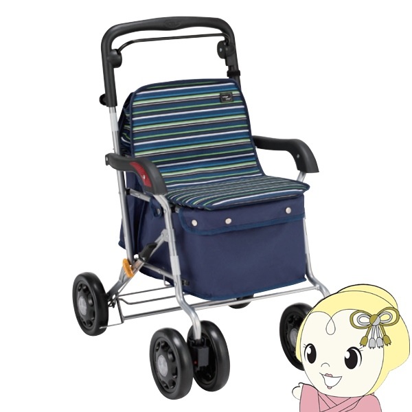 商品コード:MGB22-STS-LNBマキテック シルバーカー アンティ ネイビー 押し車 介護 高齢者 屋外用 買い物 歩行補助イス付 耐荷重100kg UX-2NB【送料無料(北海道・沖縄・離島除く)】