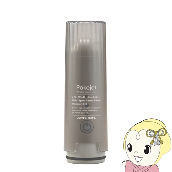 商品コード:PSTV-600ポータブルシャワートイレ APIX アピックス Pokejet ポケジェット 170ml 充電式 USB-C充電 ハンディ 携帯 APT-100-GY【送料別】