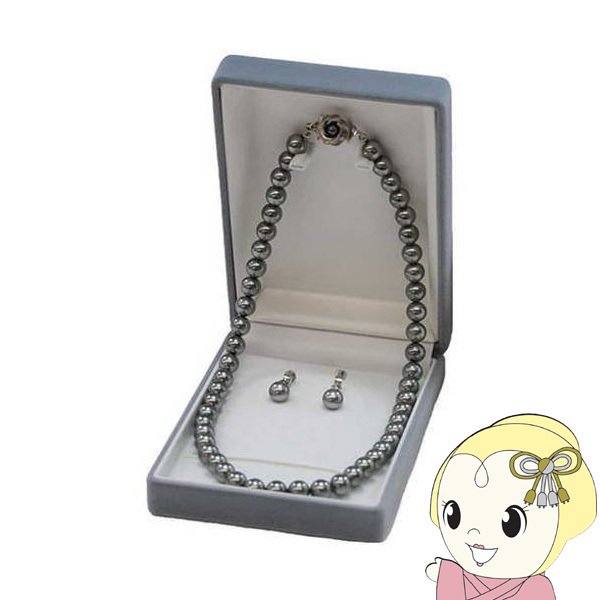 商品コード:BMA-GP01NVピュア 日本製 ネックレス ガラスパール ネックレス&イヤリング セット グレー 花カン留め具 8mm 42cm Pure NPSC-002GY【送料別】