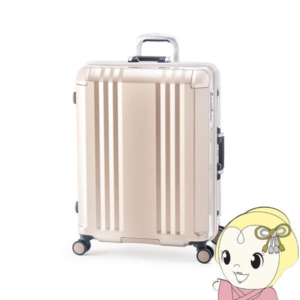 商品コード:ALI-070R-24-WHスーツケース フレームタイプ 73L シャンパンゴールド 前輪ストッパー機能付 静音キャスター 軽量 TSAロック デカかるEdge FRAME【送料無料(北海道・沖縄・離島除く)】