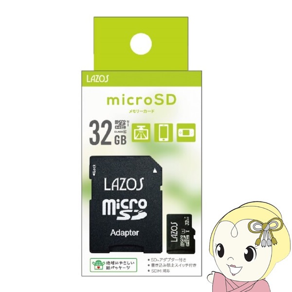 Lazos microSDHCメモリーカード 32GB CLASS10 紙パッケージ L-B32MSD10-U1【送料別】