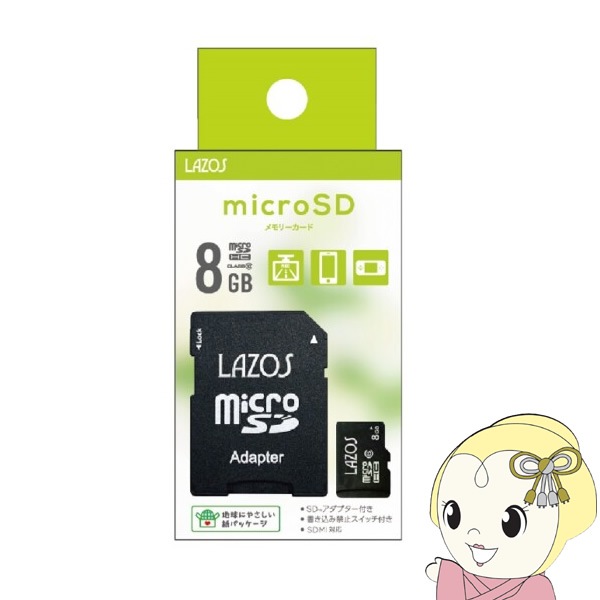 商品コード:L-128SDX10-U3在庫あり マイクロSDカード MicroSDカード 8GB CLASS10 Lazos L-B8MSD10【送料別】