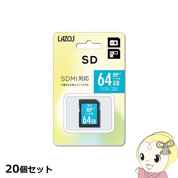 商品コード:ADR-MICROK【20個セット】Lazos SDカード 64GB L-64SDX10-U3X20【送料無料(北海道・沖縄・離島除く)】