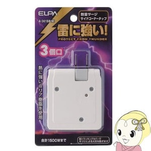 商品コード:KH50PMA-361SB-W 朝日電器 ELPA 耐雷サージ付サイドコーナータップ 3個口 ホワイト【送料別】