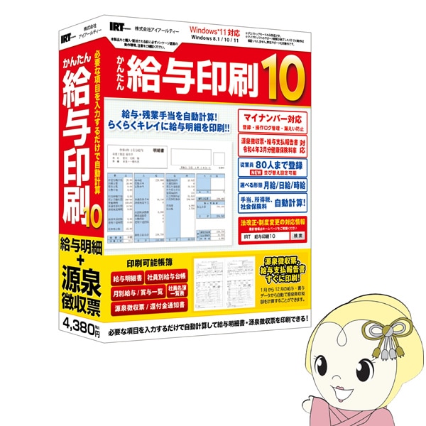 在庫あり 給与印刷ソフト IRT 簡単給与印刷10 最新様式対応 Windows11対応 IRTB0511【送料別】