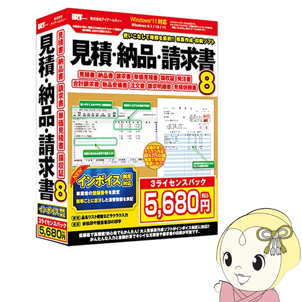 商品コード:IRTB0512在庫あり 帳簿作成ソフト 見積・納品・請求書8 インボイス制度対応 3ライセンスパック IRTB0510【送料無料(北海道・沖縄・離島除く)】