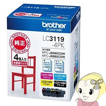 商品コード:LC417XLBKLC3119-4PK ブラザー MFC-J6580CDW/MFC-J6980CDW専用 純正 インクカートリッジ 大容量タイプ お徳用4色パック【送料無料(北海道・沖縄・離島除く)】