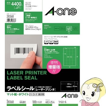 商品コード:CR-11868エーワン 28368 ラベルシール (レーザープリンタ) マット紙(A4判) 100枚入【送料別】