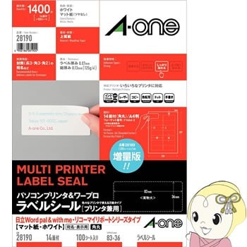 商品コード:CR-01927エーワン 28190 パソコンプリンタ&ワープロラベルシール (プリンタ兼用) マット紙(A4判) 100枚入【送料別】