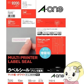 商品コード:CR-09075エーワン 73292 ラベルシール (プリンタ兼用) マット紙 100枚入【送料別】
