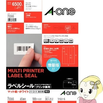 商品コード:CR-09074エーワン 73265 ラベルシール (プリンタ兼用) マット紙 100枚入【送料別】