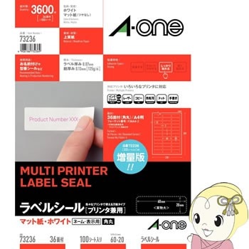 商品コード:CR-09072エーワン 73236 ラベルシール (プリンタ兼用) マット紙 100枚入【送料別】