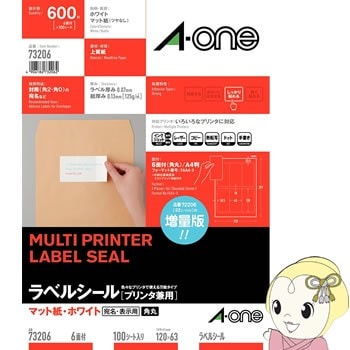 商品コード:CR-30017エーワン 73206 ラベルシール (プリンタ兼用) マット紙 100枚入【送料別】