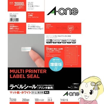 商品コード:CR-09083エーワン 73200 ラベルシール (プリンタ兼用) マット紙 100枚入【送料別】