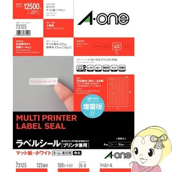 商品コード:CR-09077エーワン 73125 ラベルシール (プリンタ兼用) マット紙 100枚入【送料別】