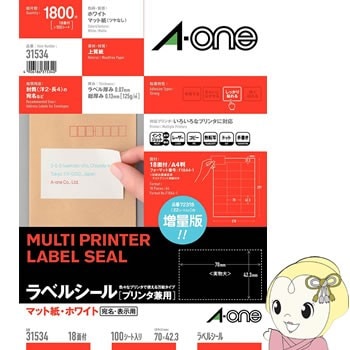 商品コード:CR-09062エーワン 31534 ラベルシール (プリンタ兼用) マット紙 100枚入【送料別】