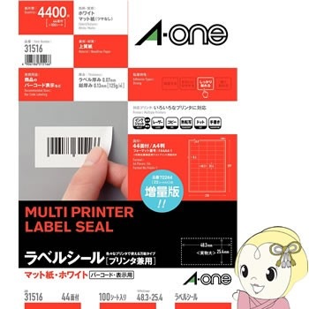 商品コード:CR-09073エーワン 31516 ラベルシール (プリンタ兼用) マット紙 100枚入【送料別】