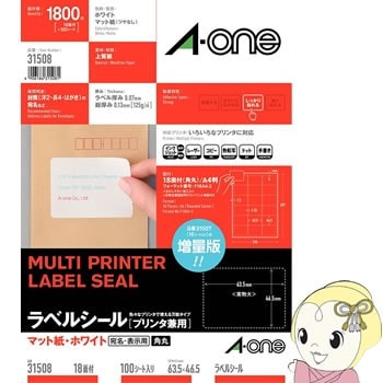 商品コード:CR-09061エーワン 31508 ラベルシール (プリンタ兼用) マット紙 100枚入【送料別】