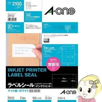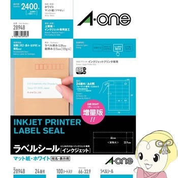 商品コード:JP-EM1NA4Nエーワン 28948 ラベルシール (インクジェット) マット紙(A4判) 100枚入【送料別】