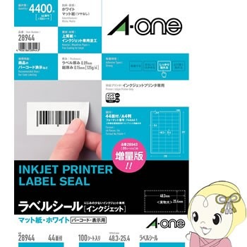 商品コード:CR-30031エーワン 28944 ラベルシール (インクジェット) マット紙(A4判) 100枚入【送料別】
