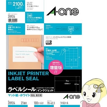 商品コード:CR-30021エーワン 28924 ラベルシール (インクジェット) マット紙(A4判) 100枚入【送料別】