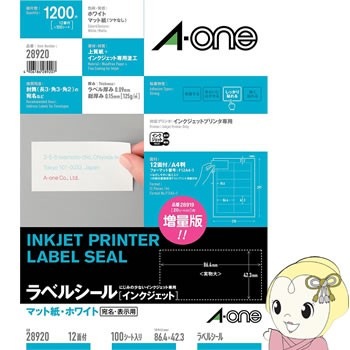 商品コード:CR-30019エーワン 28920 ラベルシール (インクジェット) マット紙(A4判) 100枚入【送料別】