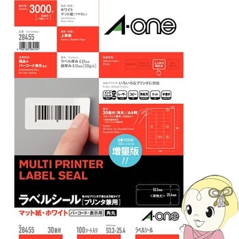 商品コード:CR-09071エーワン 28455 ラベルシール (プリンタ兼用) マット紙 100枚入【送料別】