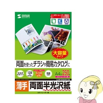 商品コード:JP-EM1NA4N-100LBP-KCNA4N-250 サンワサプライ カラーレーザー用半光沢紙・薄手(A4・250シート)【送料別】