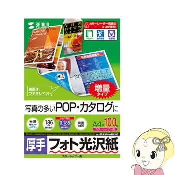 商品コード:PPCA4AEX10LBP-KAGNA4N-100 サンワサプライ カラーレーザー用フォト光沢紙・厚手(A4・100シート)【送料別】