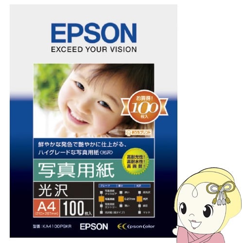 商品コード:KA420SLUKA4100PSKR エプソン 写真用紙 光沢 A4 100枚【送料別】