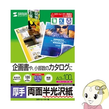 在庫あり LBP-KCNA3N サンワサプライ カラーレーザー用半光沢紙・薄手(A3・100シート)【送料別】