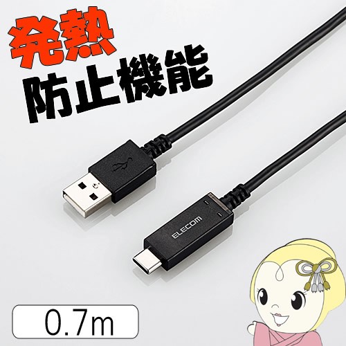 商品コード:MJ-5WHMPA-AC07SNBK エレコム スマホ用USBケーブル/USB2.0/(Type-C-Aメス)/認証品/温度検知機能付/0.7m/ブラック【送料別】