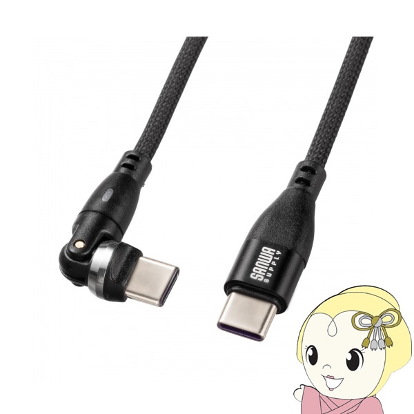 商品コード:CA-611NUSB Type-Cケーブル サンワサプライ USB2.0 Type-Cコネクタ540度回転ケーブル PD100W 1.8m KU-CCP100KA18BK【送料別】
