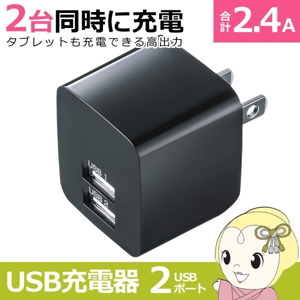商品コード:ACA-PD89WACA-IP44BK サンワサプライ USB充電器 2ポート 合計2.4A【送料別】