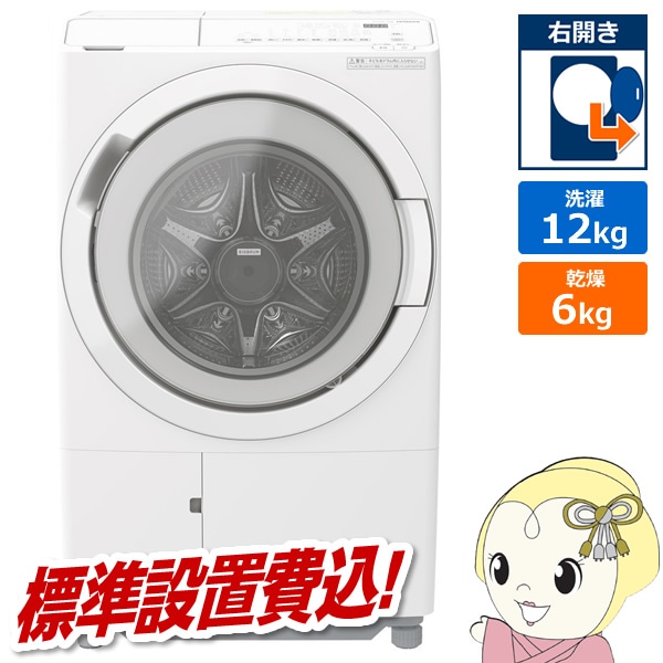 商品コード:BD-SW120ML-W[予約]ドラム式洗濯乾燥機 【標準設置費込】 日立 HITACHI 洗濯12kg 乾燥6kg 右開き ホワイト BD-SV120MR-W【送料無料(北海道・沖縄・離島対応不可)】
