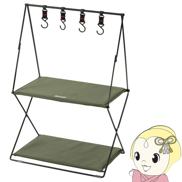 商品コード:MIP-93NVシェルフ おしゃれ フォールディングシェルフ 折りたたみ 収納 ラック 2段 アウトドア BBQ グランピング キャンプ グリーン 東谷【送料無料(北海道・沖縄・離島除く)】