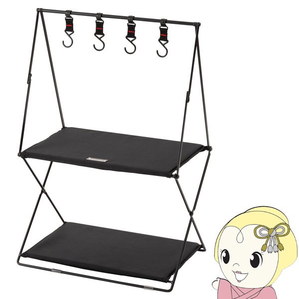 商品コード:MIP-72GRラック 2段 おしゃれ 収納 棚 シェルフ 折りたたみ式 コンパクト 持ち運び フック付き 引っ掛け 玄関収納 ブラック【メーカー直送】【送料無料(北海道・沖縄・離島除く)】