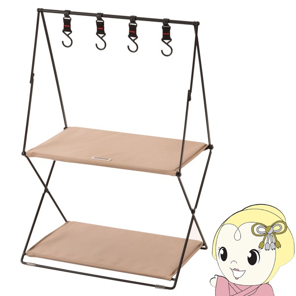 商品コード:MIP-72BKラック 2段 おしゃれ 収納 棚 シェルフ 折りたたみ式 コンパクト 持ち運び フック付き 引っ掛け 玄関収納 ベージュ【メーカー直送】【送料無料(北海道・沖縄・離島除く)】