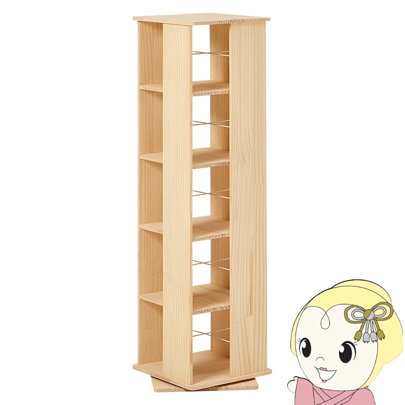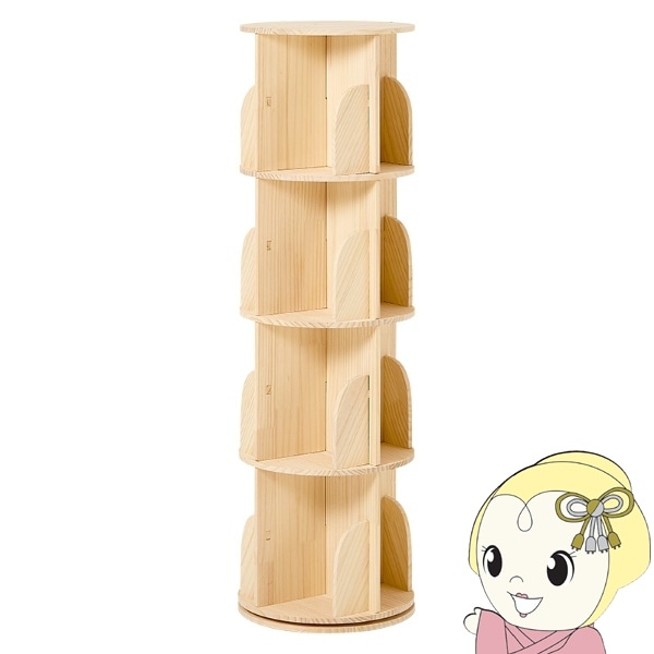 商品コード:RAM-2433DBR本棚 360度回転 天然木 幅39cm 4段 シェルフ 回転式 ラック 無塗装パイン材 棚 丸型 書棚 省スペース コーナーラック【送料無料(北海道・沖縄・離島除く)】