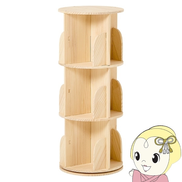 商品コード:MUD-6428NA本棚 360度回転 天然木 幅39cm 3段 シェルフ 回転式 ラック 無塗装パイン材 棚 丸型 書棚 省スペース コーナーラック【送料無料(北海道・沖縄・離島除く)】