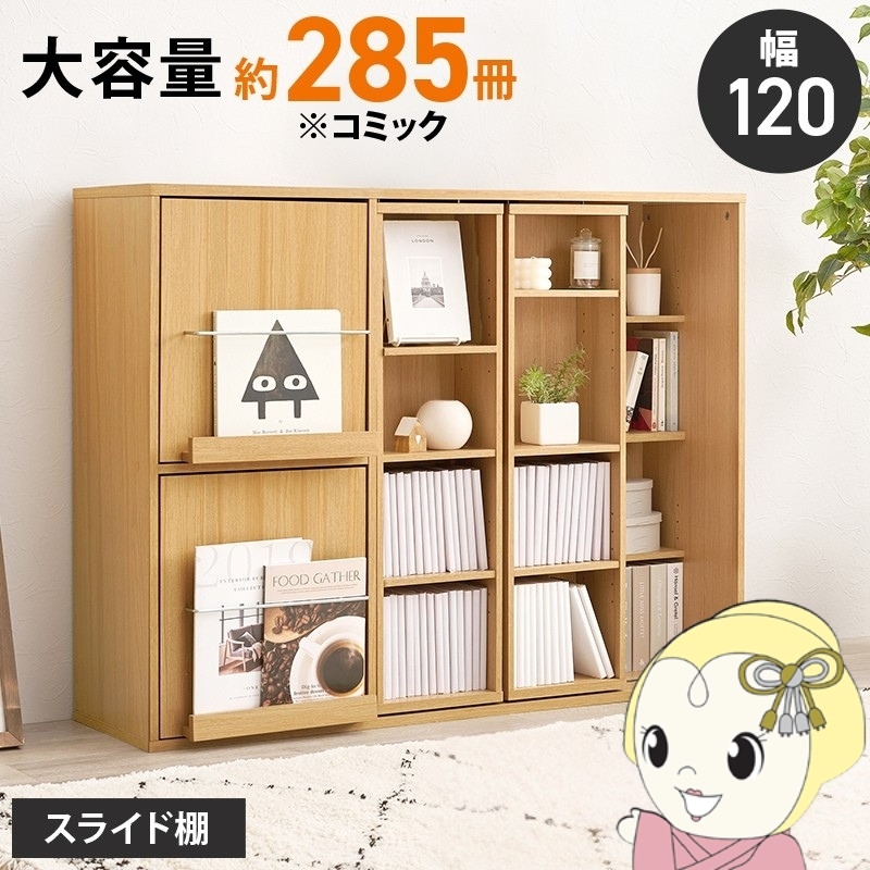 商品コード:FRM-0011-DB本棚 ブックシェルフ 大容量 スライド 扉付 おしゃれ コミック 木目調 ブックラック 可動棚 前後2列 高さ調節可能 幅120cm ナチュラル【送料無料(北海道・沖縄・離島除く)】