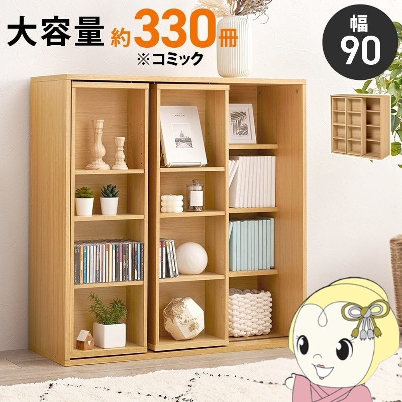 商品コード:RCC-1565NA本棚 ブックシェルフ 大容量 スライド おしゃれ コミック 木目調 ブックラック 可動棚 前後2列 高さ調節可能 幅90cm ナチュラル【送料無料(北海道・沖縄・離島除く)】
