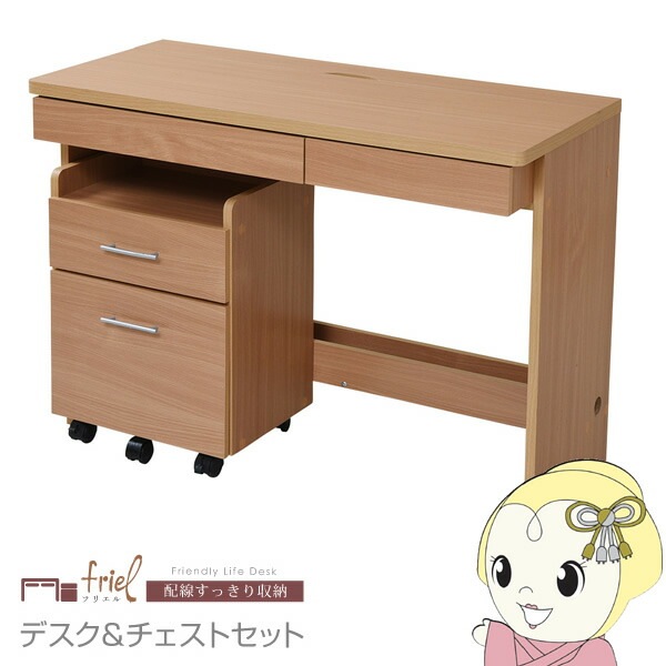 商品コード:FUJI-73608デスク シンプルデスク 2点セット すっきり 配線 収納 PCデスク パソコンデスク キャスター 付きワゴン ナチュラル【送料無料(北海道・沖縄・離島除く)】