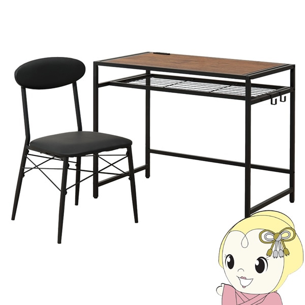 商品コード:LDC-4698WHデスクチェアセット ブラウン×ブラック 木目調デスク&PVCチェア2点セット 椅子 パソコンデスク 机 幅80cm 奥行50cm コンセント付き【送料無料(北海道・沖縄・離島除く)】
