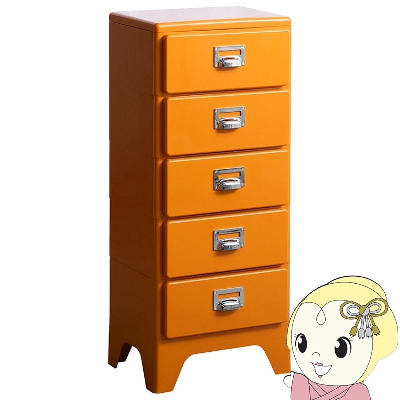 商品コード:WG-H001-WIN送料無料(沖縄・北海道・離島除く)■多段チェスト Cran クラン 5段 5段タイプ 収納ボックス 収納棚 棚 スリム レトロ 可愛い 角丸加工 収納力 引き出し ネームタグ 洋服 オレンジ