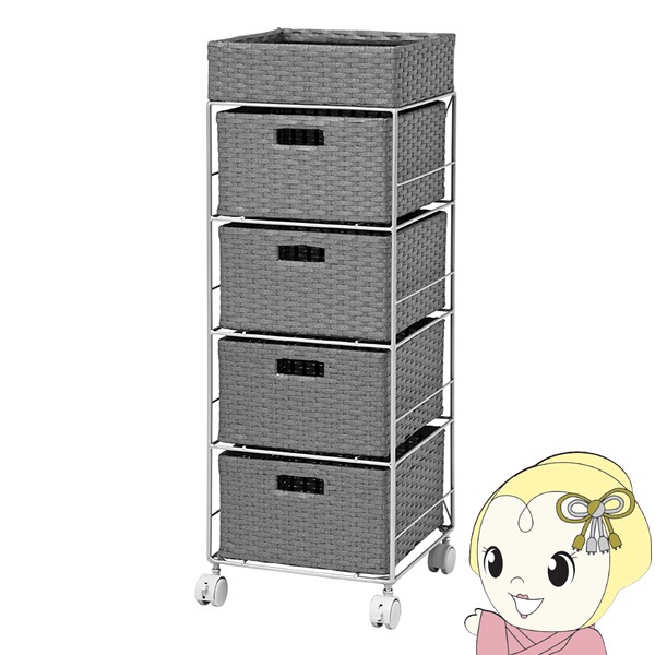商品コード:RAN-2410WHラック 棚 隙間 すき間 おしゃれ ラタン風 キャスター 引き出し かご バスケットラック シンプル スリム 簡単組立 幅20cm グレー【送料無料(北海道・沖縄・離島除く)】